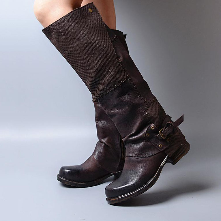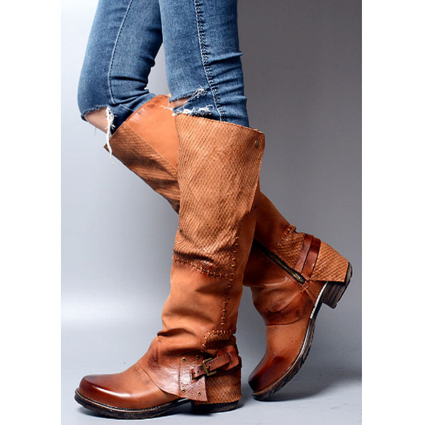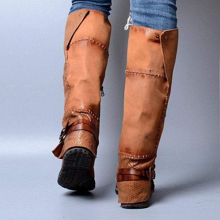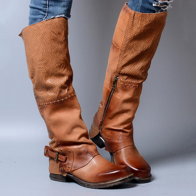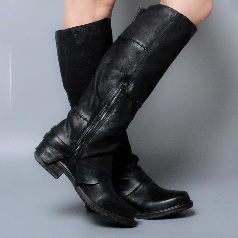 Snygga Vinter Kvinnor Sido Blixtlås Läder Stövlar i hög höjd