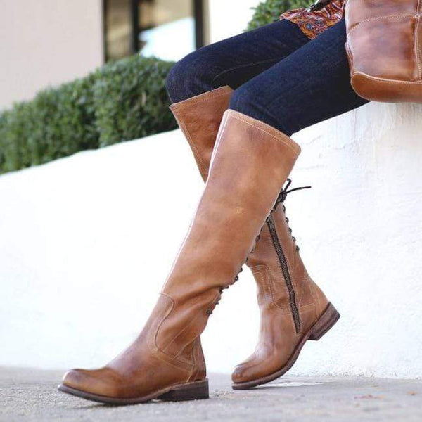Mode och bekväma långa stövlar med låg klack för kvinnor